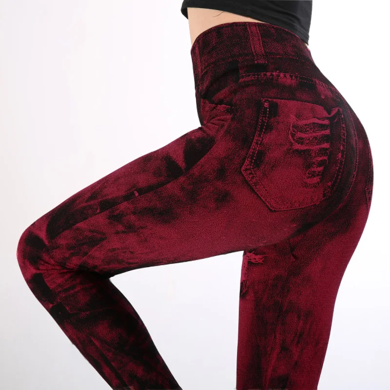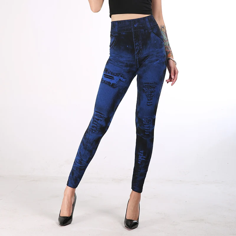 Greatest New Fashion Woman Leggings Plus Size 2019 New Jeggings Print Mock Pockets and Hole Slim Jeans Leggi