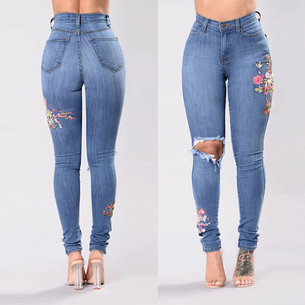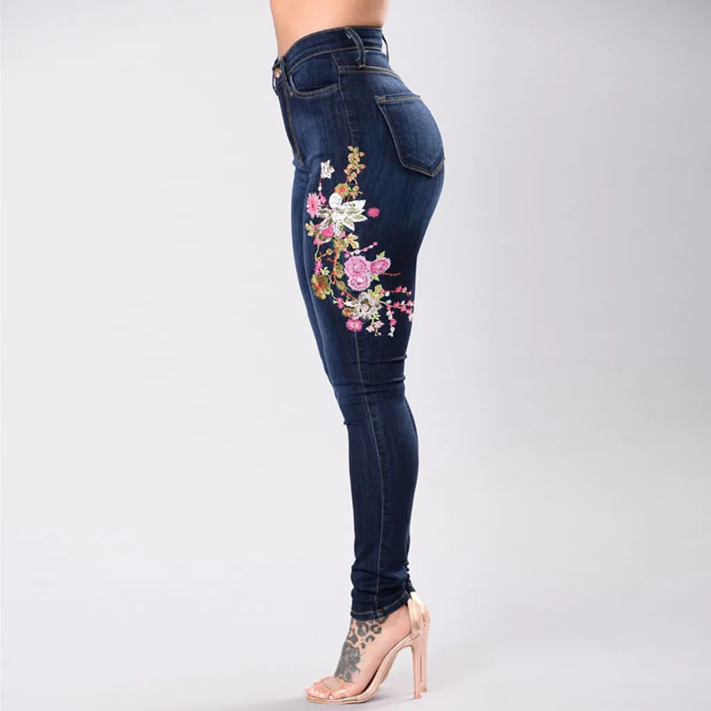 awesome Fashion Jeans Women Embroidered Button Pocket High Waist Denim Pants Skinny Slim Jeans Wholesale Fr