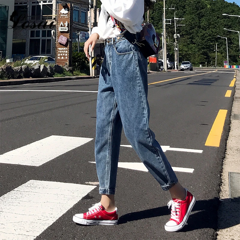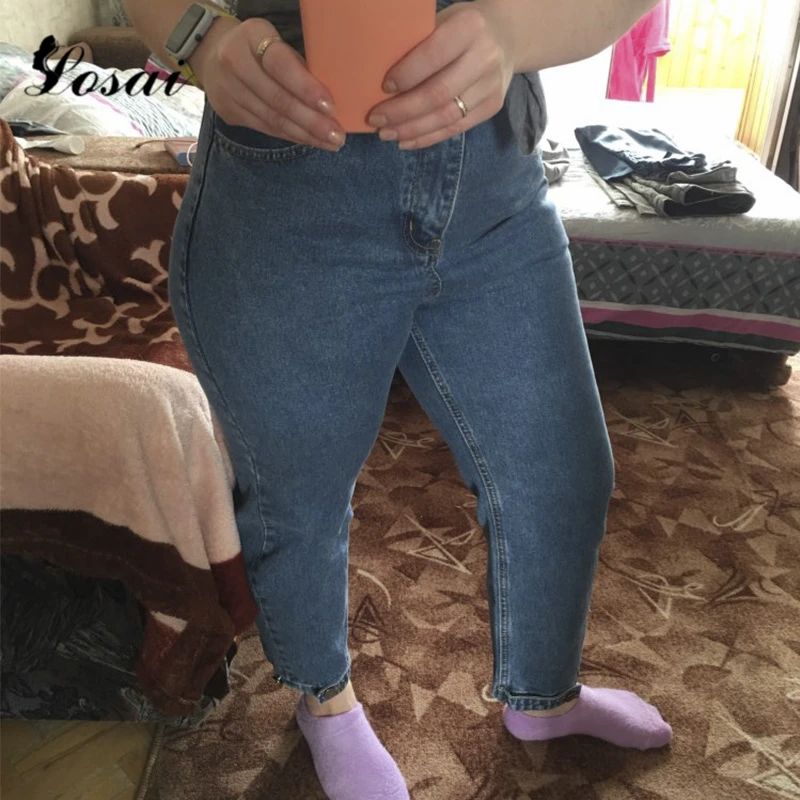 price reduction Plus Size Women High Waist Boyfriend Jeans for Women Mom Jeans Dropshipping 2019 New Cotton Blue De