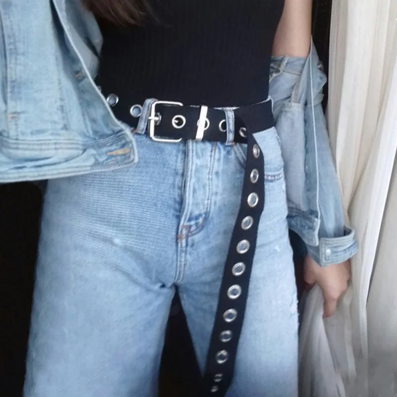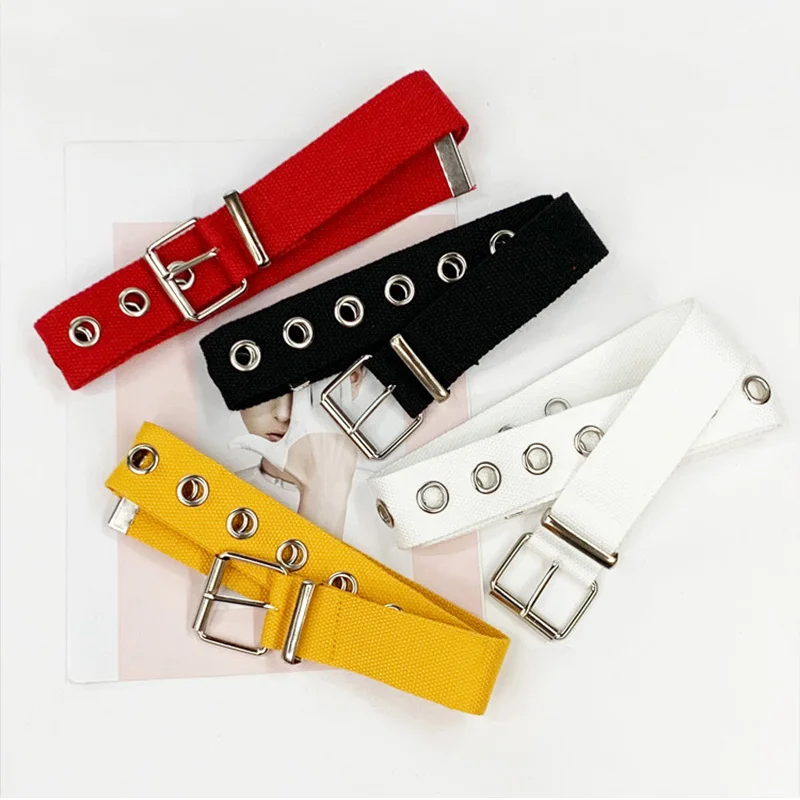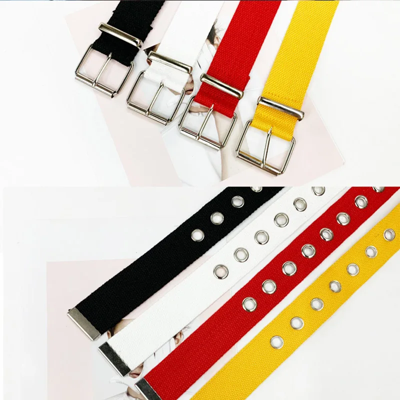 discounted New Fashion Women Canvas Belts Casual Personality Hollow Adjustable Solid Color Belt Students jean