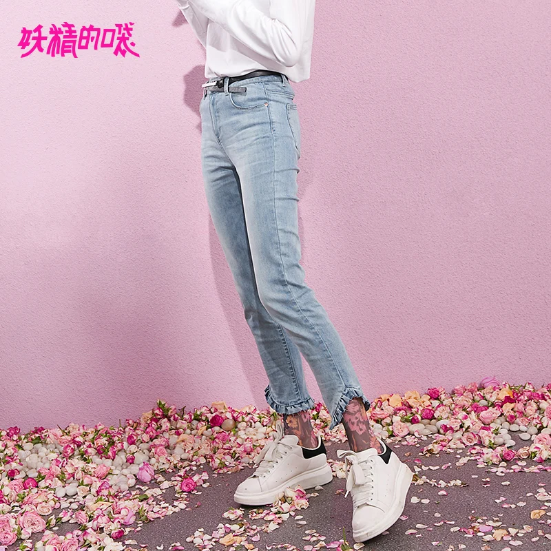 ELFSACK Autumn New Women Jeans Cotton Ankle-Length Pants Plaid Casual Bottoms Straight Slim Jeans Harajuku Femme Pencil Pants,ELFSACK Blue Solid Cut Out Frill Elastic Waist Casual Jeans Woman 2019 Autumn Pure Straight Office Ladies Basic Daily Trousers, ELFSACK Blue Solid Cut Out Frill Elastic Waist Casual Jeans Woman 2019 Autumn Pure Straight Office Ladies Basic Daily Trousers
